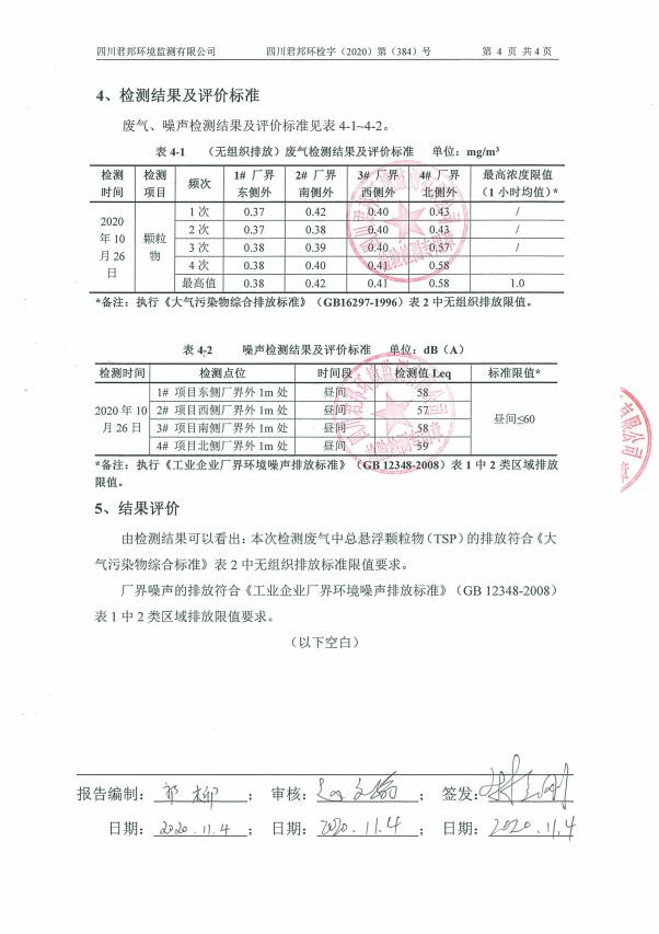 自行检测完成情况相关材料——米兰官方站网页版-米兰MiLan(中国) 2020年污染源检测报告